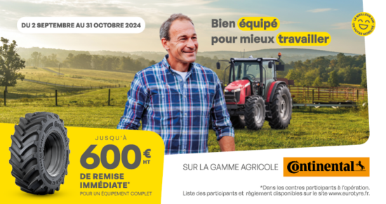 Du 1er Mars au 30 Avril 2024, profitez de l’offre jusqu’à 300€ HT* de remise immédiate sur la gamme Agricole Continental. Détail des […]